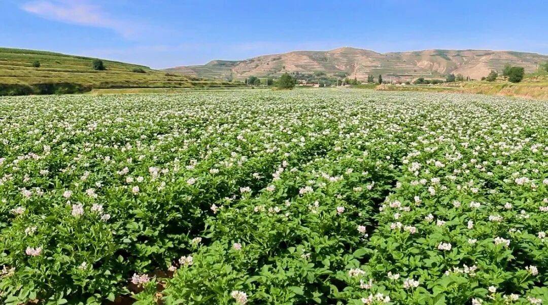 正在左丰村、庆丰村万亩马铃薯尺度化种植,沟渠如银色丝带环绕纠缠山间,滋养着但愿的郊野。春夏之交,大地好像铺上了绿茸茸的巨毯;金秋时节,连片的马铃薯花开似雪!